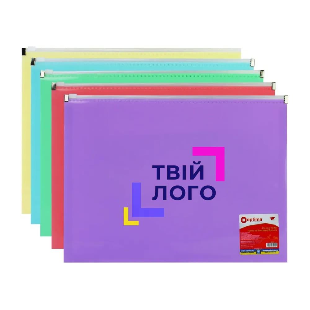 Папка пластиковая глянцевая А4 пастель ассорти на застежке zip-lock з лого