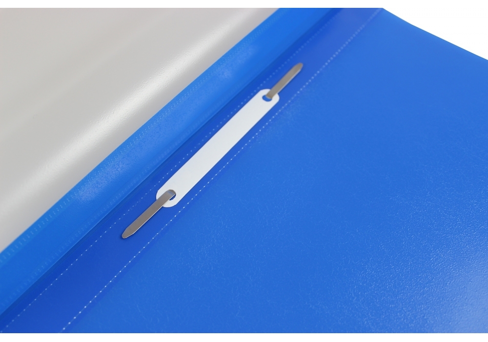 Папка-скоросшиватель формата А4 изготовлена из полипропилена, имеет прозрачный верхний лист. На лицевой стороне расположен карман с пластиковой полосой белого цвета, на которой можно указать содержание.