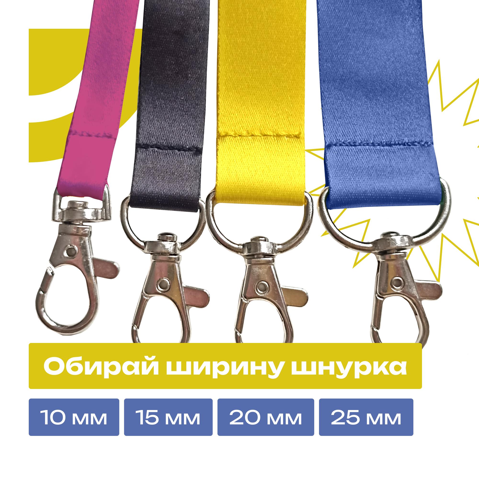 По умолчанию, цена представлена за шнурок с фурнитурой карабин, петелька, прищепка. При желании можно добавить дополнительную фурнитуру, такую как разъем фастекс, разъем безопасности. Обратитесь к нашим менеджерам для перерасчета стоимости заказа. Они сделают все необходимое, чтобы у вас появились корпоративные шнурки для бейджей.