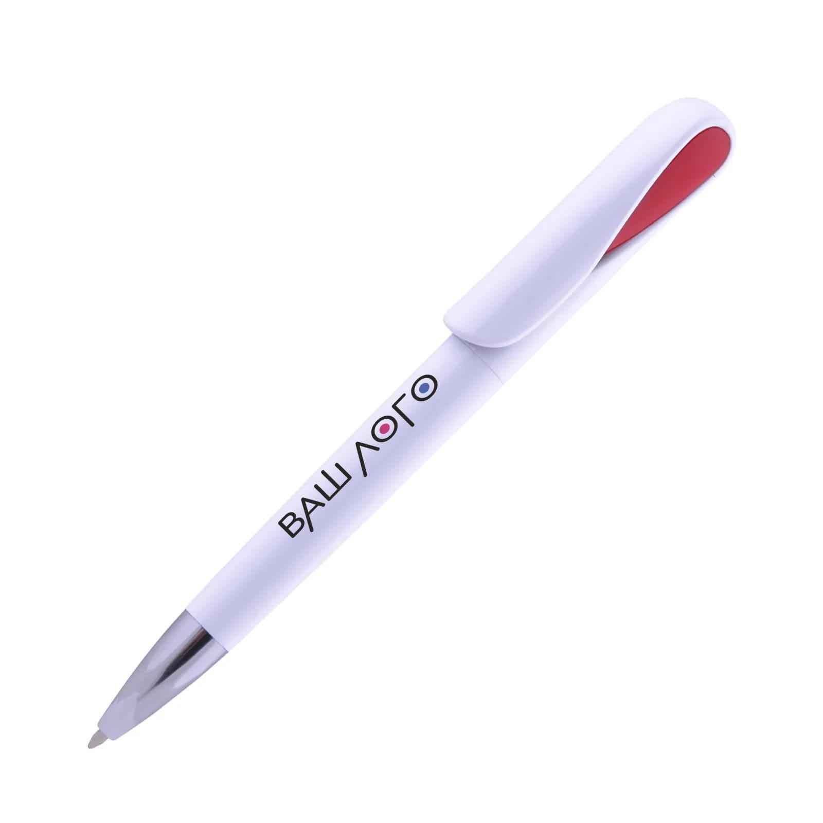 Ручка шариковая, белая с поворотным механизмом под нанесение логотипа. Смелый внешний вид и цветная капля дополняют и разбавляют белый цвет. Реализуем на тубусе ваши задумки от одноцветного логотипа до авторского принта с градиентом.