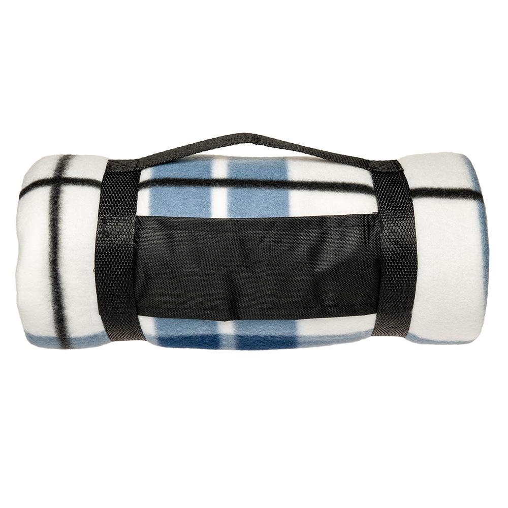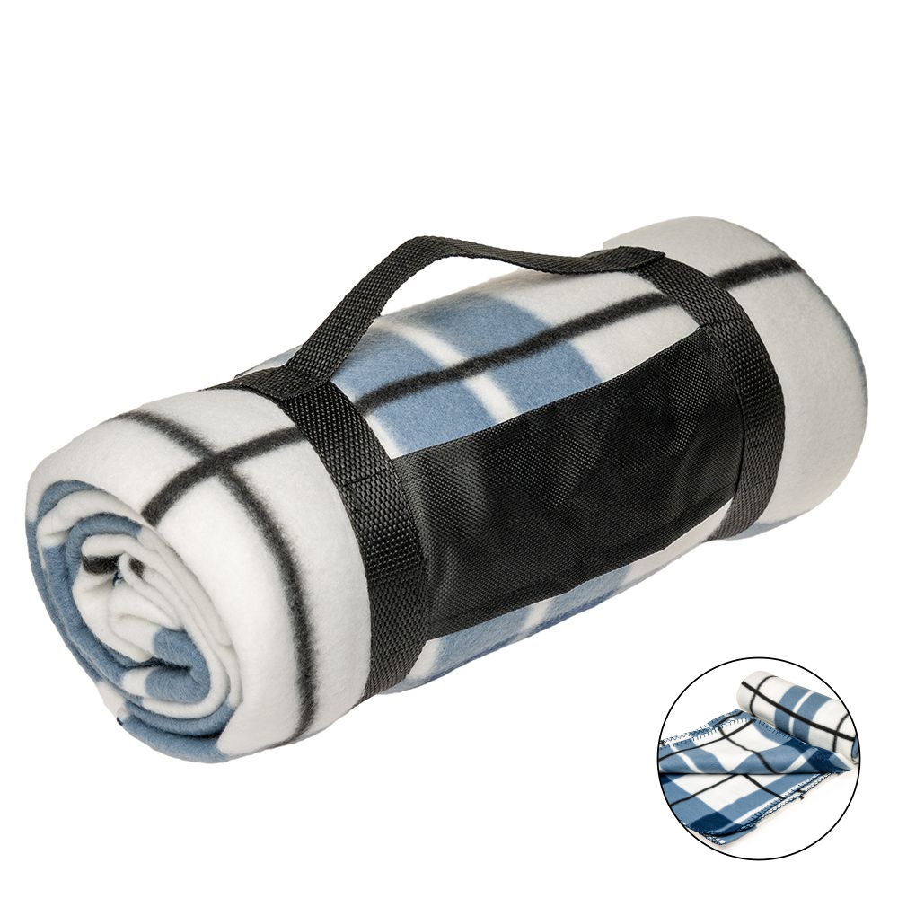 Плед поставляется свернутым в рулон. Фиксируется специальной стяжкой из полиэстера 600D на липучках. Имеется ручка для удобства переноски.