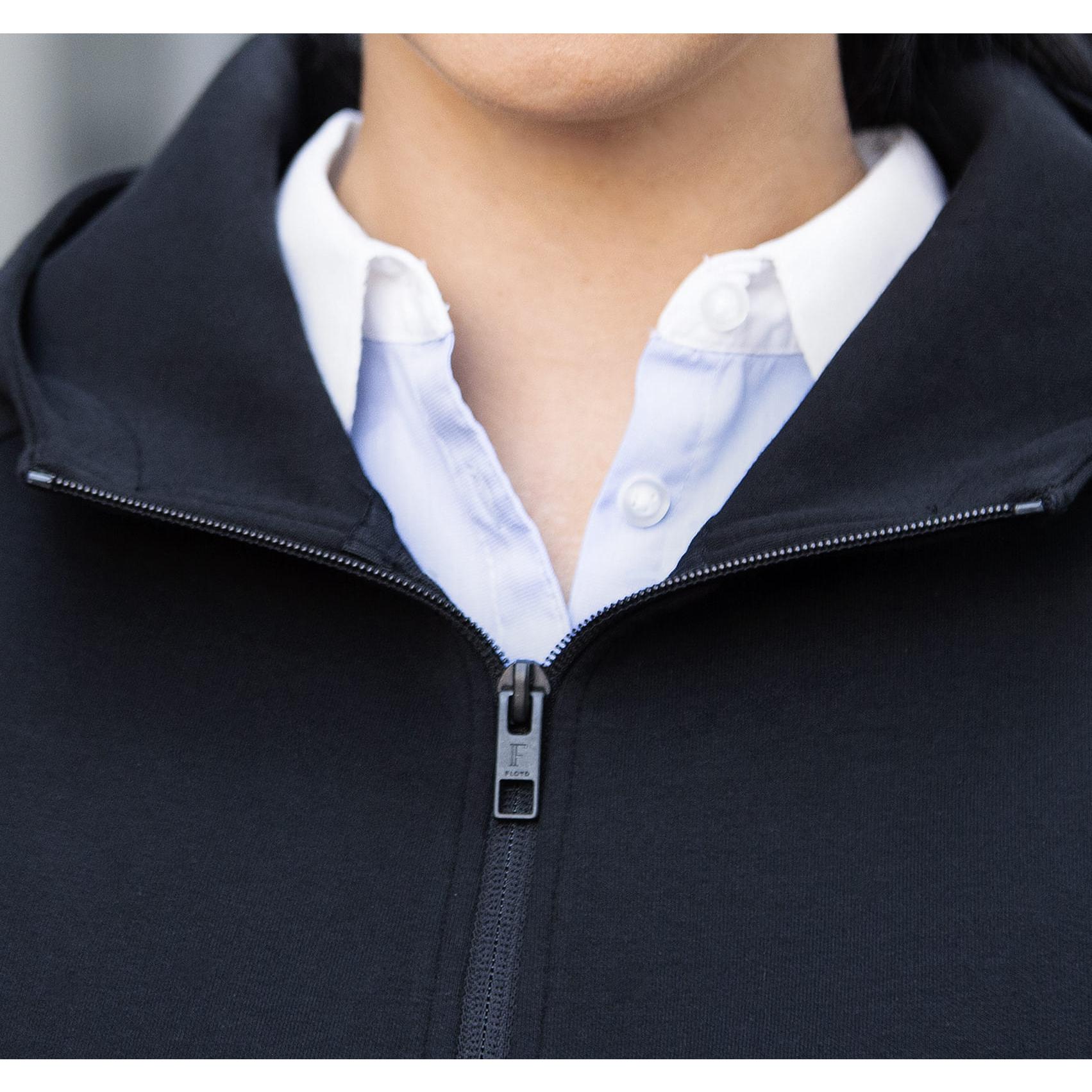 71% хлопок ー 21% полиэстер ー 9% спандекс. Это отличный вариант согреться для холодных офисов, командировок и выездных выставок. Черный всегда смотрится стильно!