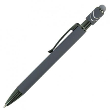 Ручка-антистресс металлическая с Soft-touch и стилусом Relaxa с логотипом