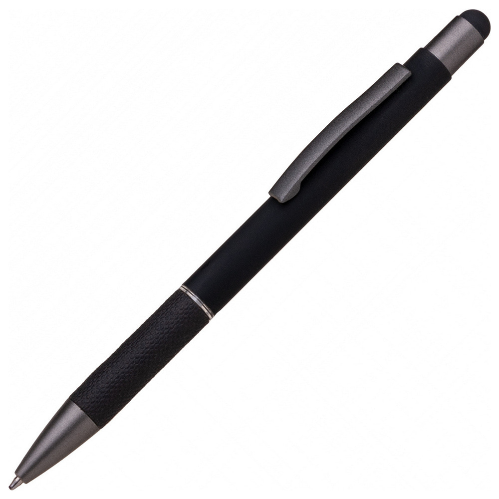 Шариковая ручка-стилус в корпусе из алюминия со специальной вставкой для удобства удержания. Оснащена наконечником для работы с сенсорным экраном. Материалы: ABS-пластик, алюминий, металл. Механизм – кнопочный.