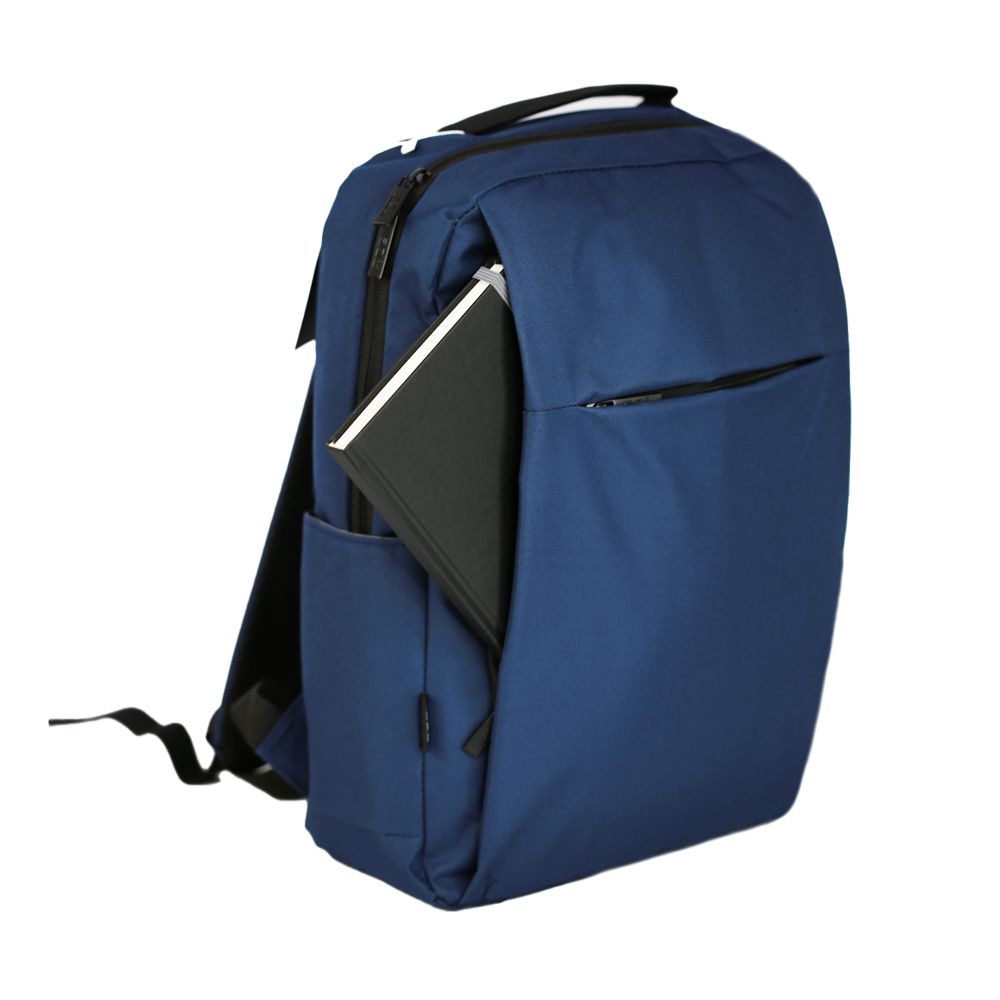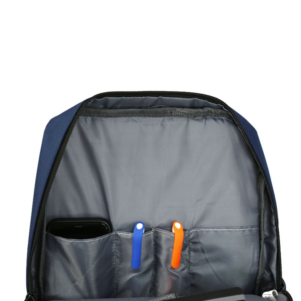 Рюкзак имеет продуманную конструкцию: внутри большое отделение с мягким карманом для ноутбука, два открытых кармана для мелочей и карточек, а также маленькие кармашки для ручек. Снаружи расположены два вместительных кармана на молнии для быстрого доступа и один боковой карман для мелких предметов.