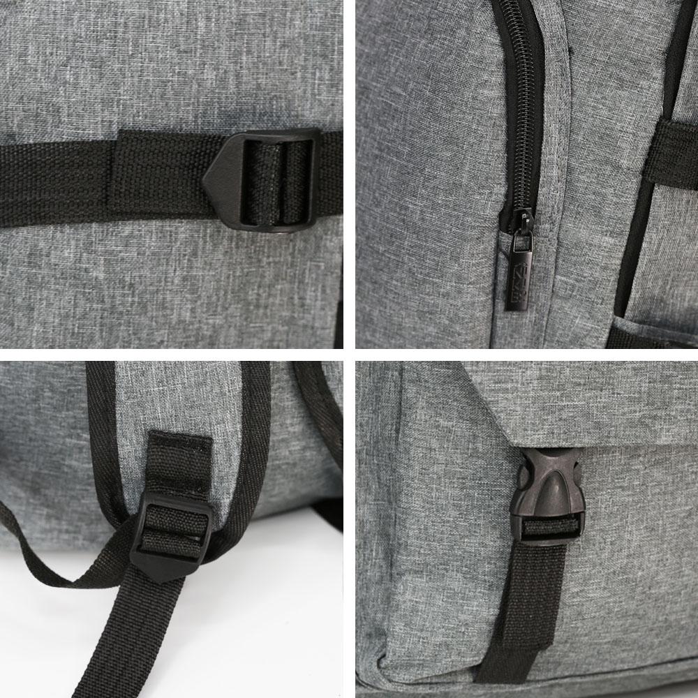 Рюкзак имеет стильную конструкцию: одно большое основное отделение на молнии, нижний передний карман и ещё один — в верхней части. Верхний карман имеет скошенную форму, закрывая переднюю часть рюкзака. Он застёгивается на молнию, скрытую под планкой, что придаёт рюкзаку аккуратный и современный вид.