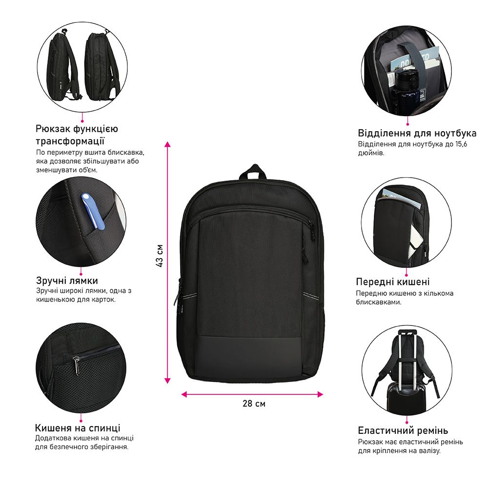 Компактный рюкзак Smart с функцией трансформации — современное решение для активной жизни. Идеален как для городских будней, так и для путешествий.