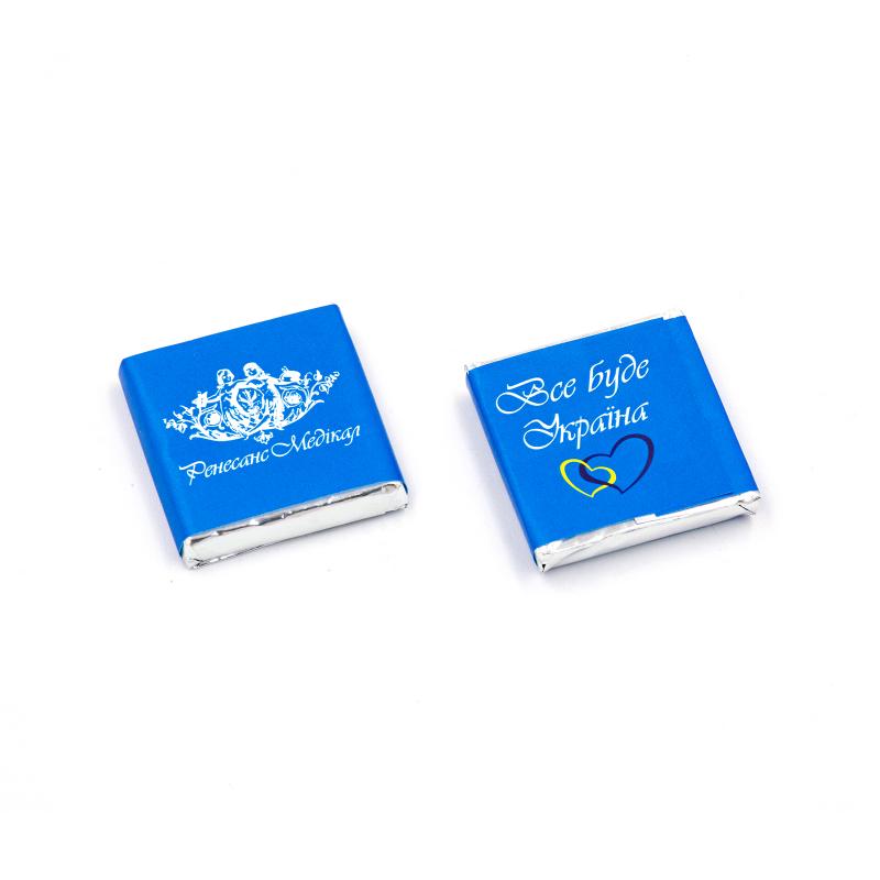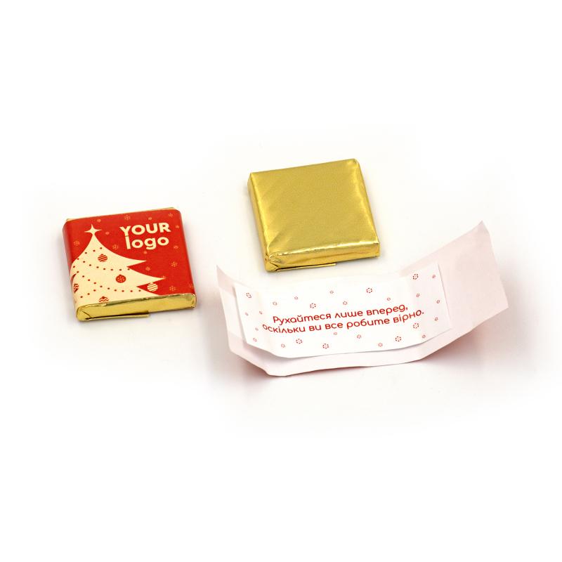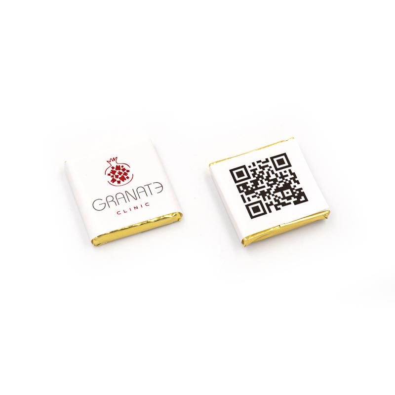 Шоколад с логотипом 5 г (флэт-упаковка) — идеальный подарок или промо-элемент для мероприятий и брендирования. Доступен в трёх вкусах: белый (28%), молочный (33%) и тёмный (60%).