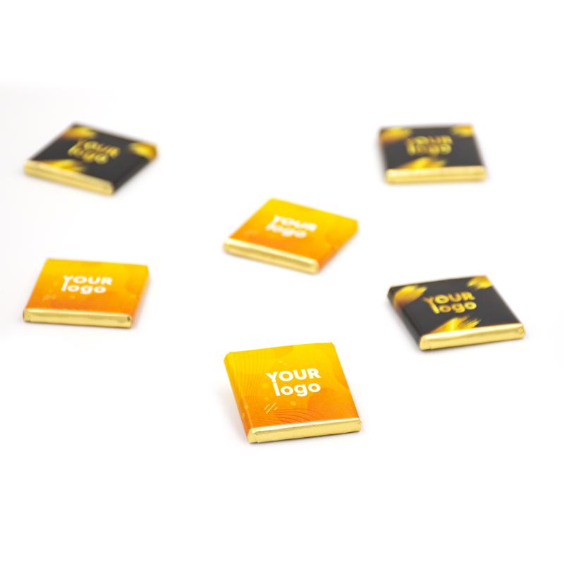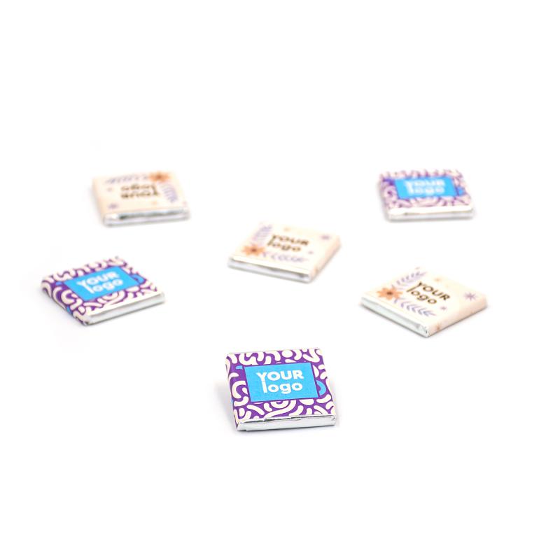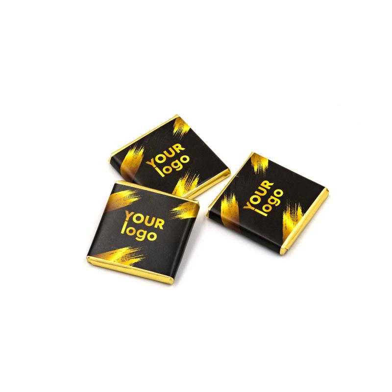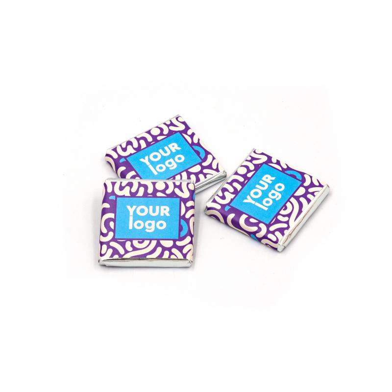 Шоколадная глазурь с логотипом 4 г — вкусный брендированный сувенир для мероприятий, презентаций или промоакций. Обладает темно-молочным вкусом, привлекательным внешним видом и компактными размерами (35 х 34 х 4 мм).