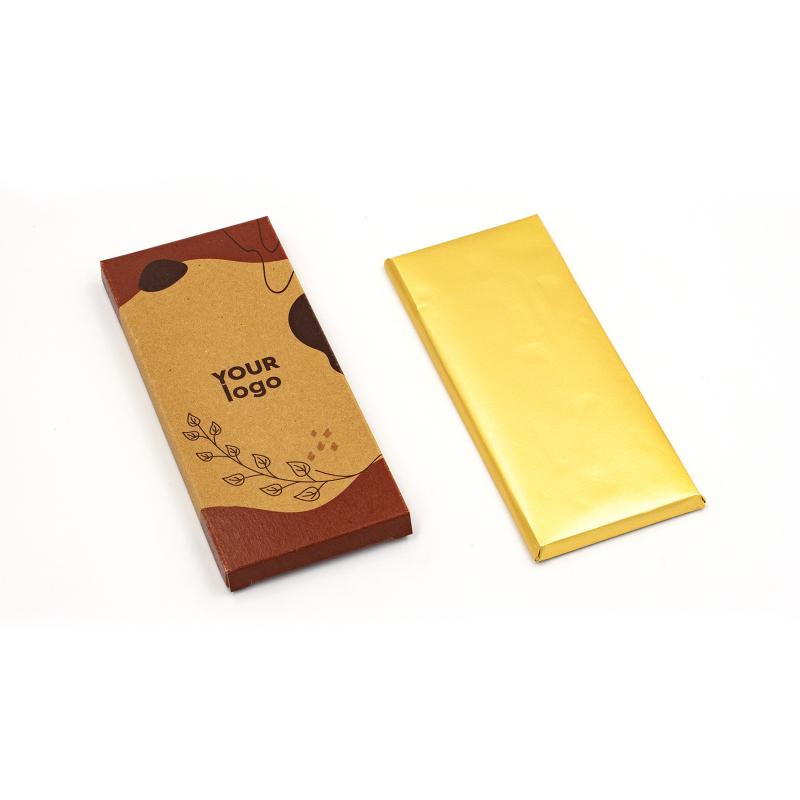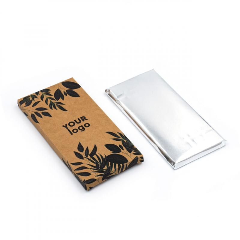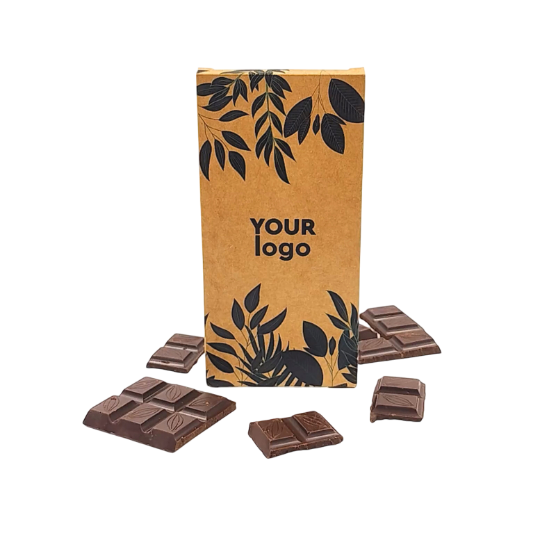 Подарите изысканное удовольствие с фирменной шоколадной плиткой в стильной крафтовой упаковке типа «пенал». Идеально подходит для бизнес-подарков, мероприятий, конференций или промо-акций.