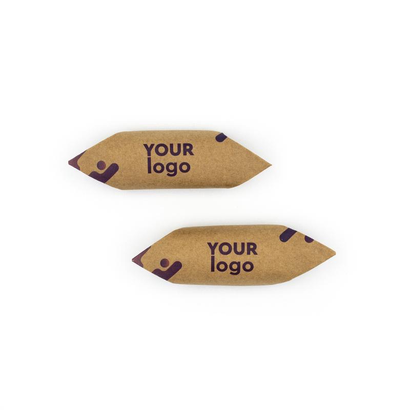 Конфета "Червоний мак" с логотипом весом 13 г сделана из пралине с фундуком в шоколадной глазури. Упакована в крафтовую бумагу и доступна для полноцветной печати. Срок годности — 10 месяцев, а производство занимает 5–14 рабочих дней. Подходит для корпоративных подарков и брендинга.