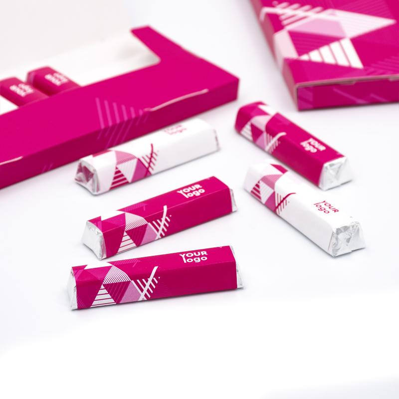 Шоколадный набор "Конверт" с логотипом, 95 г — стильный подарок или корпоративный сувенир из натурального немецкого шоколада премиум-класса. Наполнение на выбор: тёмный, молочный шоколад или микс. Упакован в картонный конверт (плотность 230 г/м²) с полноцветной печатью и возможностью ламинирования (матовое или глянцевое). Фольга золотого или серебряного цвета, возможна печать фольгой Gold/Silver (S 100×54 мм). Размер упаковки: 166×65×12 мм. Отличный выбор для брендирования и приятных впечатлений.