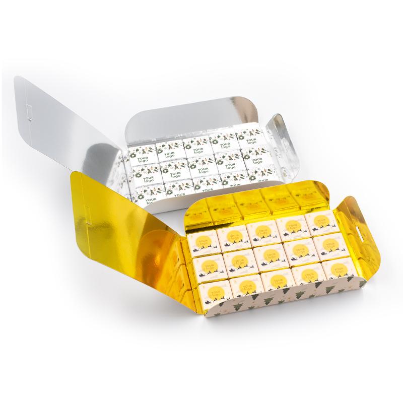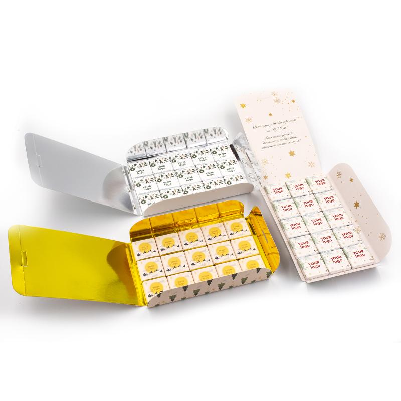 Наполнение: черный или молочный шоколад. Идеальный выбор для корпоративных подарков и рекламных акций.