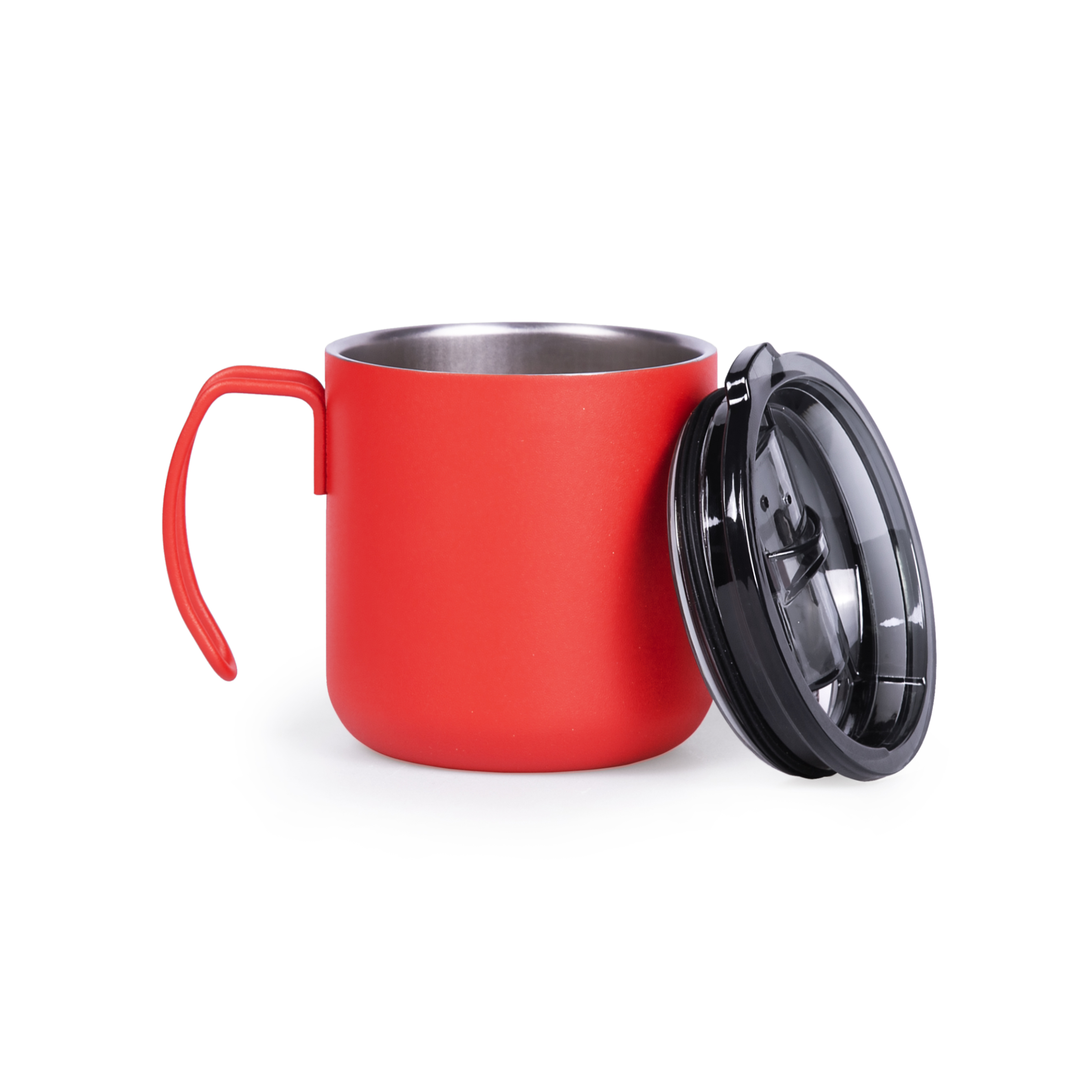 Термочашка изготовлена из нержавеющей стали с двойными стойками, покрыта матовой цветной эмалью. Крышка прозрачная с клапаном.