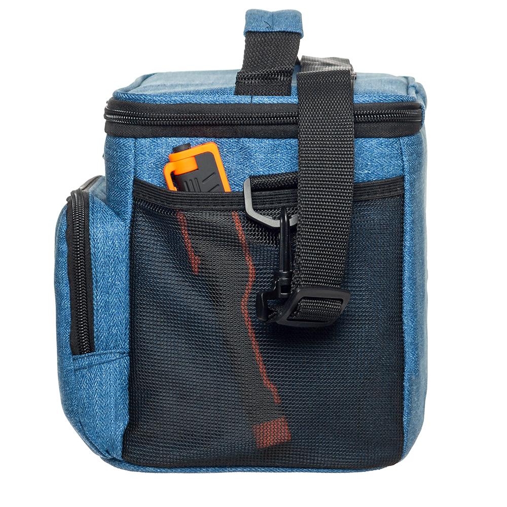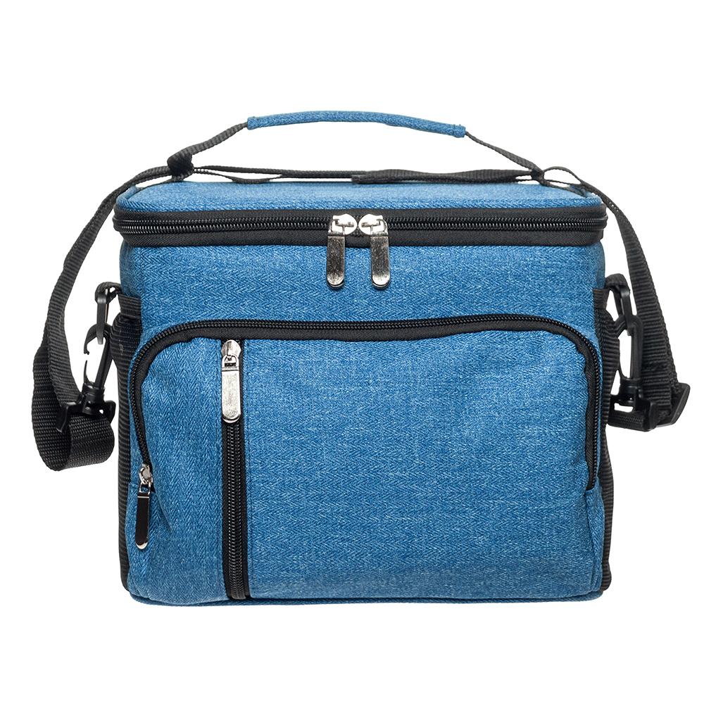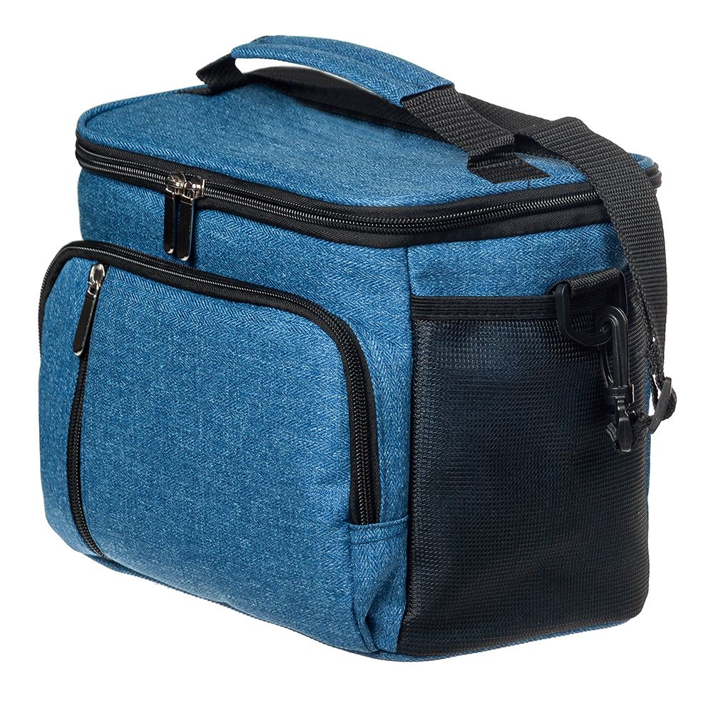 Термосумка имеет большое основное отделение и несколько карманов для личных вещей. По бокам сумки размещены карманы из сетки. Для удобства транспортировки имеется ремень, который регулируется и крепится к сумке с помощью карабинов.