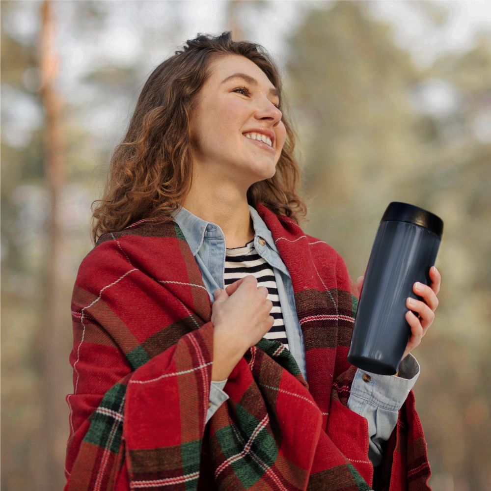 Корпус термокружки имеет двойные стенки из нержавейки. Между металлическими стенками находится вакуум, который помогает сохранять любимые напитки горячими в течение 5 часов.