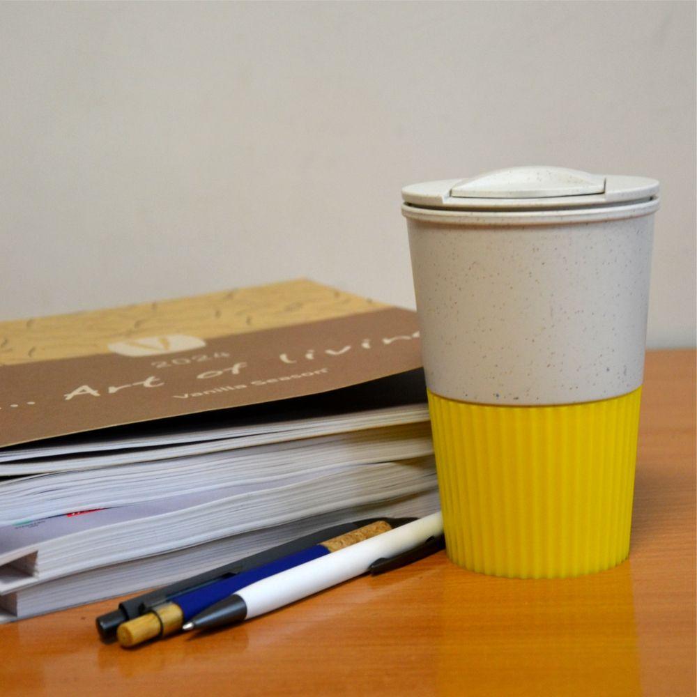 Термокружка Salta Line Art 350 мл из пшеничной соломы. Одностенная кружка с крышкой-дозатором, которая плотно закрывается, изготовлена из органического пластика. Нижняя часть корпуса кружки ребристая, не выскальзывает из рук. Предназначена для ежедневного использования на работе, во время прогулок по городу, путешествий.