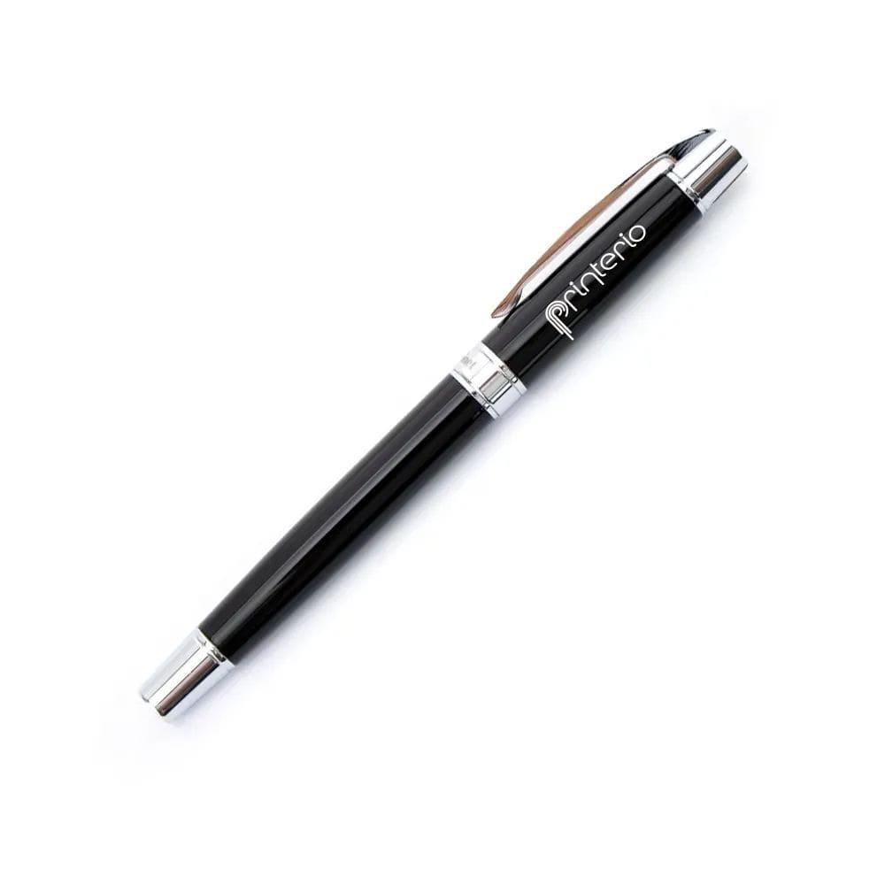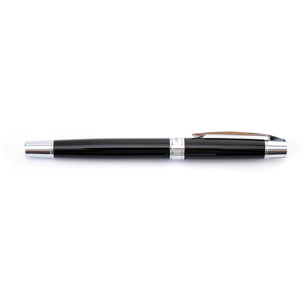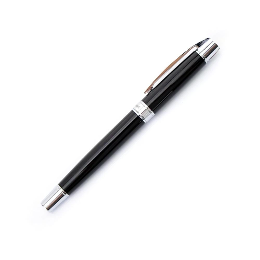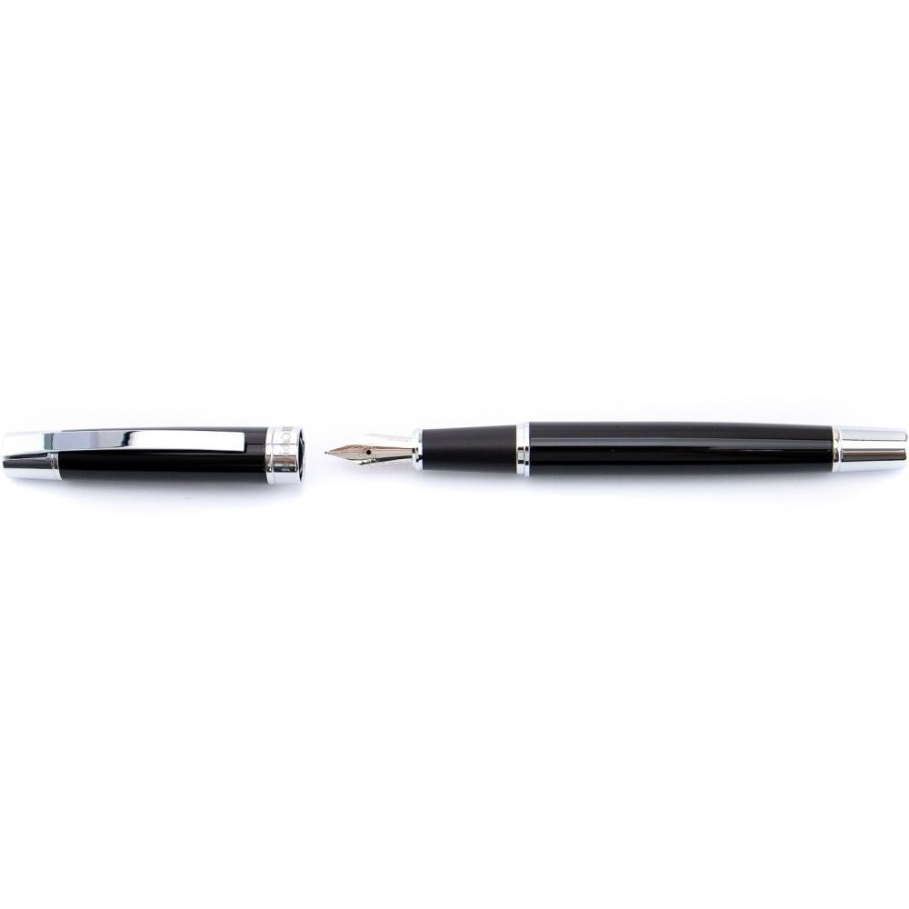 Перо з нержавіючої сталі; з конвертером; довжина ручки 13,8 см; металевий корпус; чорний глянцевий колір із сріблястими деталями додає ручці елегантності; в комплекті - подарунковий футляр.