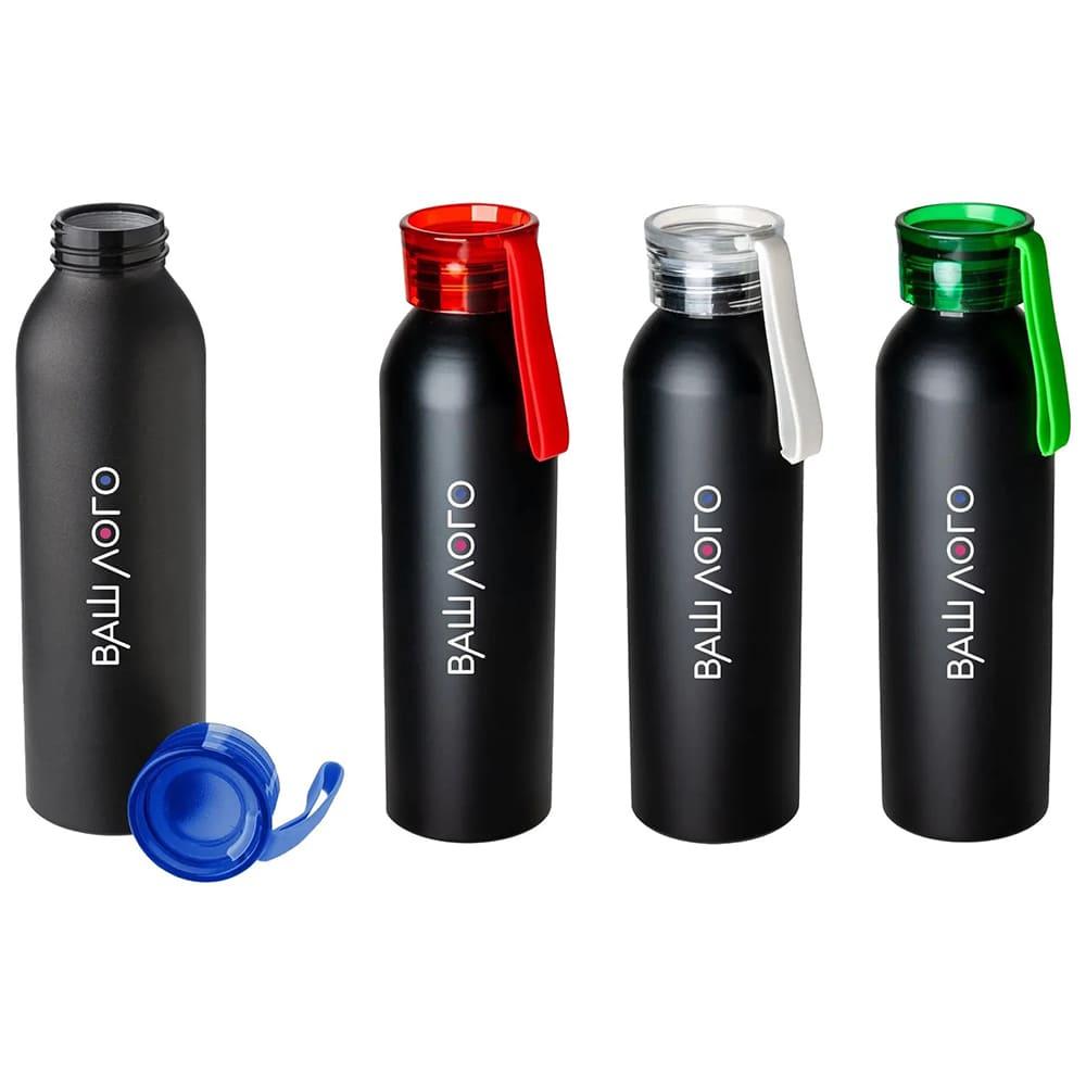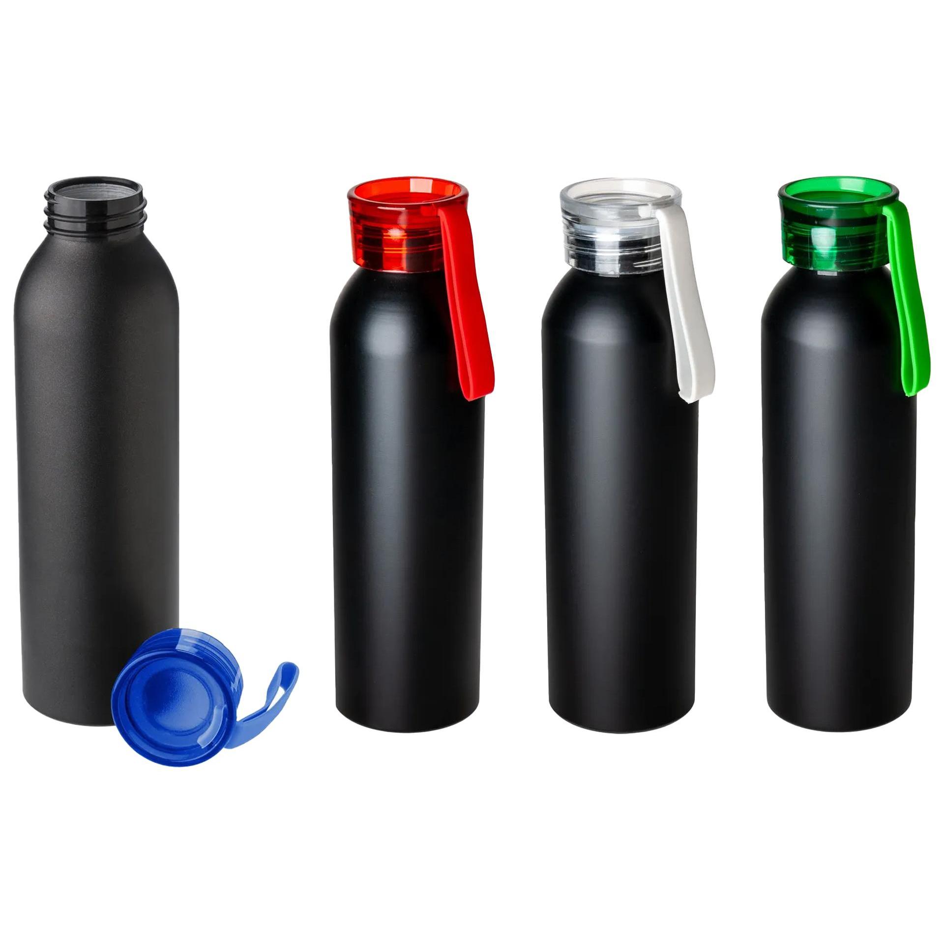 Всі моделі цієї пляшки в чорному кольорі відрізняються лише яскравими пластиковими кришками. Стильно виглядатиме ваш логотип у колір кришкам.