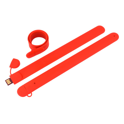 Силіконовий слеп-браслет з вбудованою флешкою. При легкому ударянні по руці браслет обкручується навколо запʼястя. Широка кольорова гама.