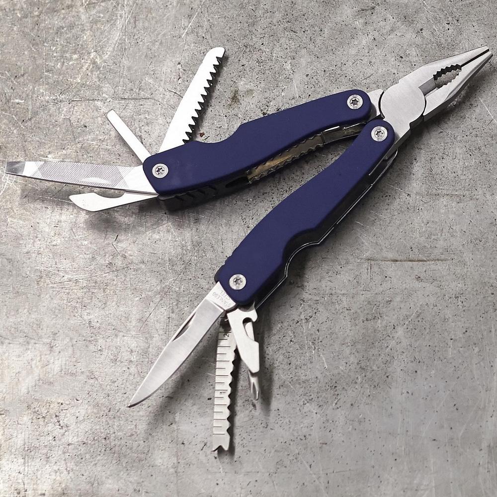 Компактний багатофункціональний інструмент 10-в-1 з нержавіючої сталі з м'якими на дотик пластиковими ручками. Поставляється в нейлоновому чохлі з петлею для ременя.