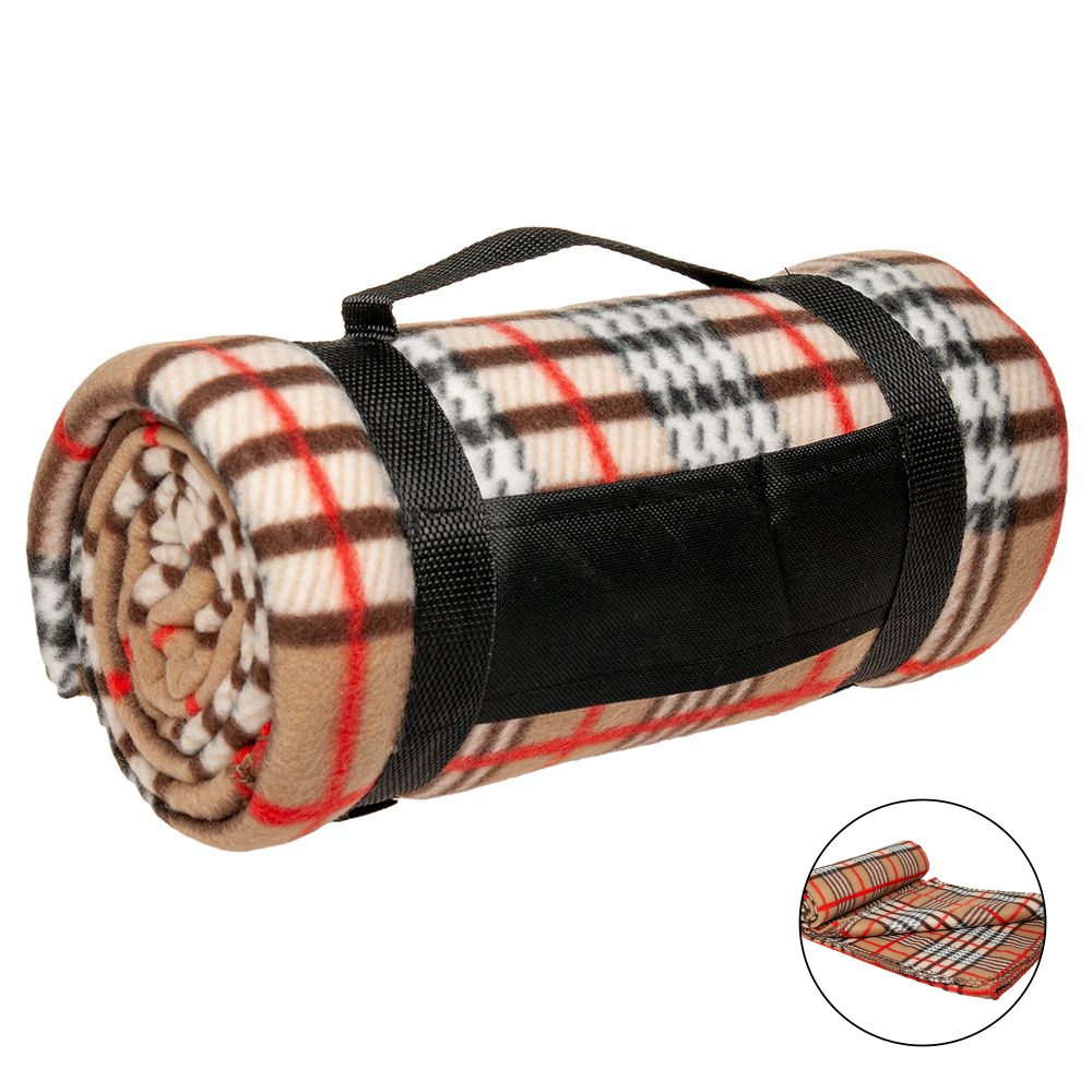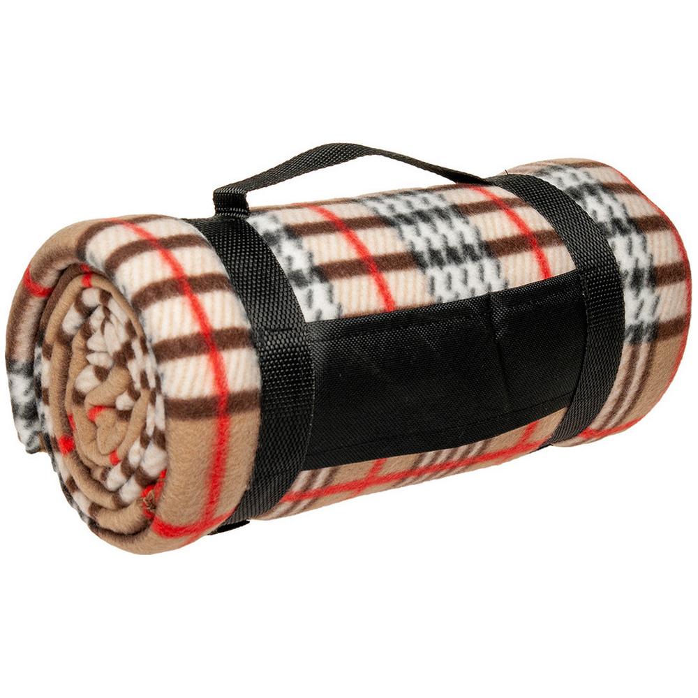 Плед поставляється згорнутим у рулон. Фіксується спеціальною шлейкою з поліестеру 600D на липучках. Є ручка для зручності переноски.