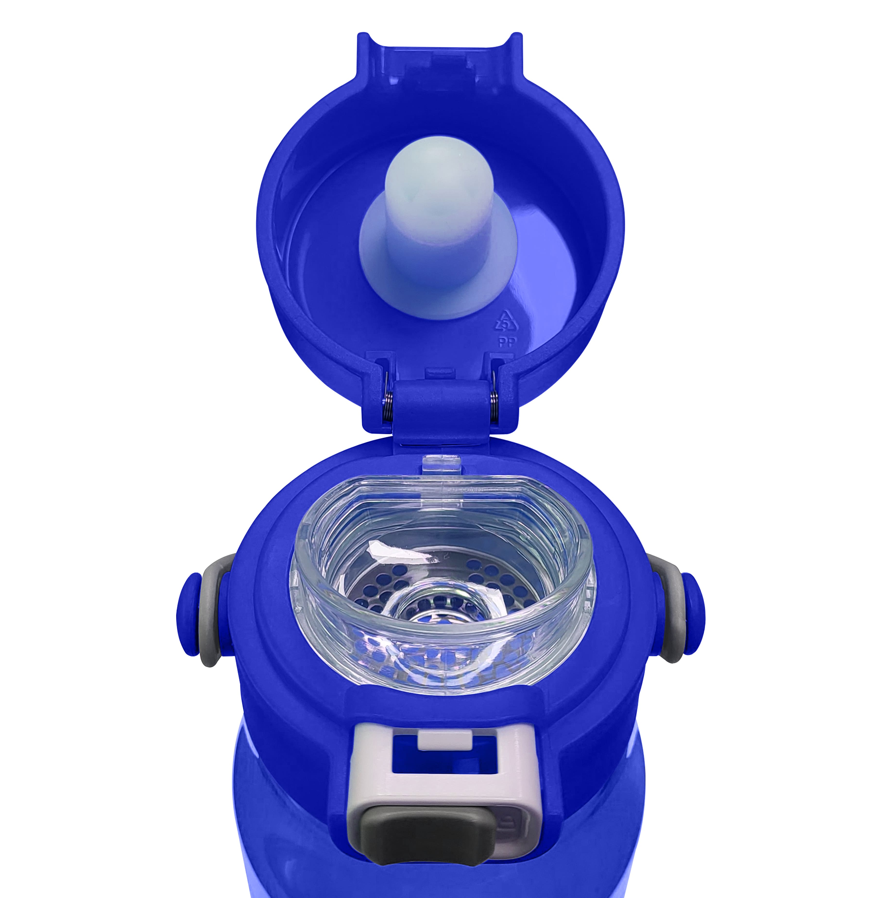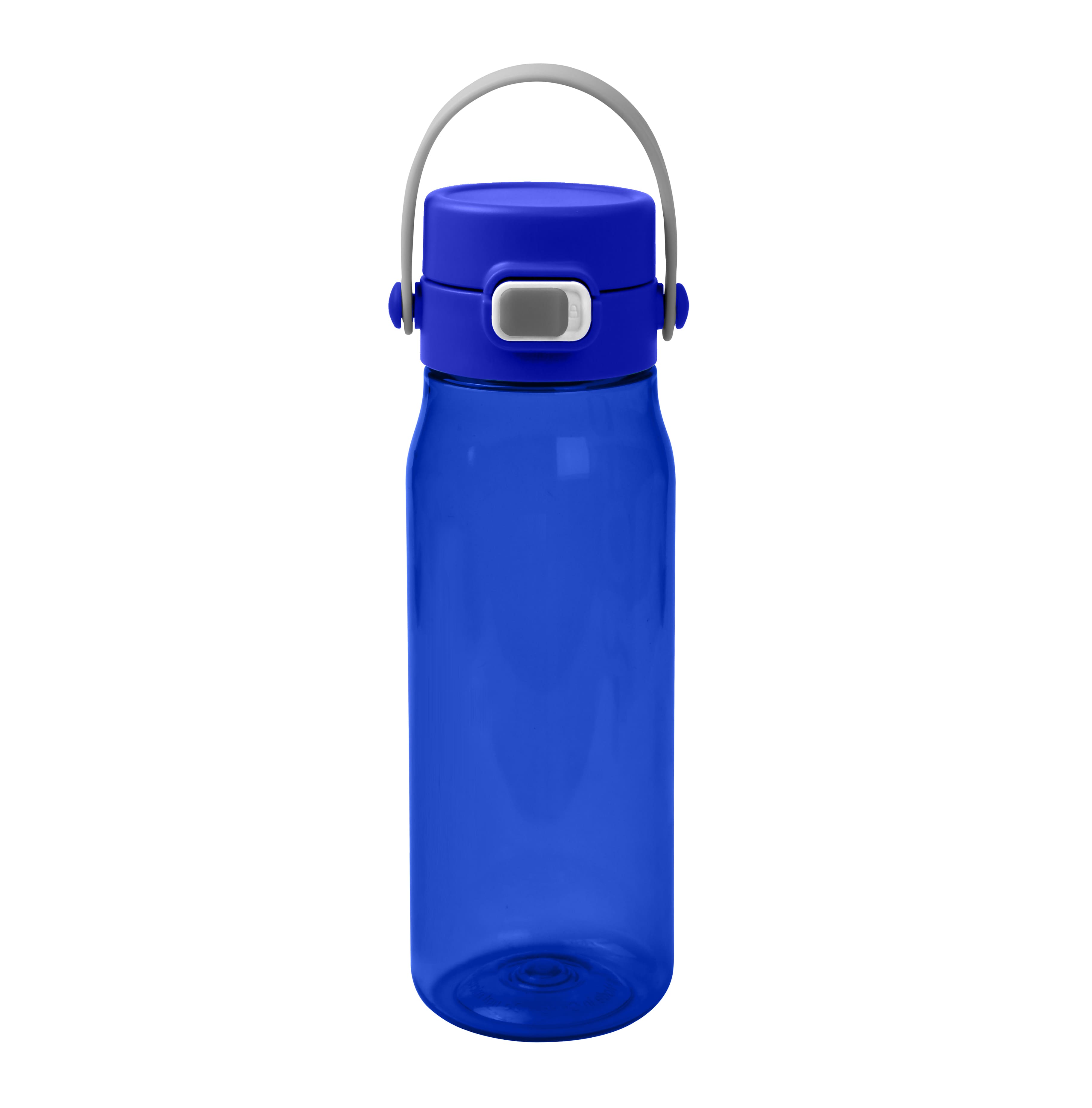 Пляшка для пиття 640 мл, матеріал пластик (BPA FREE), кришка з надійним відкидним механізмом, яка відкривається та блокується флеш-кнопкою, має силіконову ручку, яку зручно тримати або переносити пляшку, в середині кришки вмонтовано з'ємне ситечко з нержавіючої сталі. Розмір: висота 22 см, діаметр колби 7 см. Індивідуальна картонна подарункова коробка. Розмір індивідуальної коробки: 22,6 х 9 х 8 см.