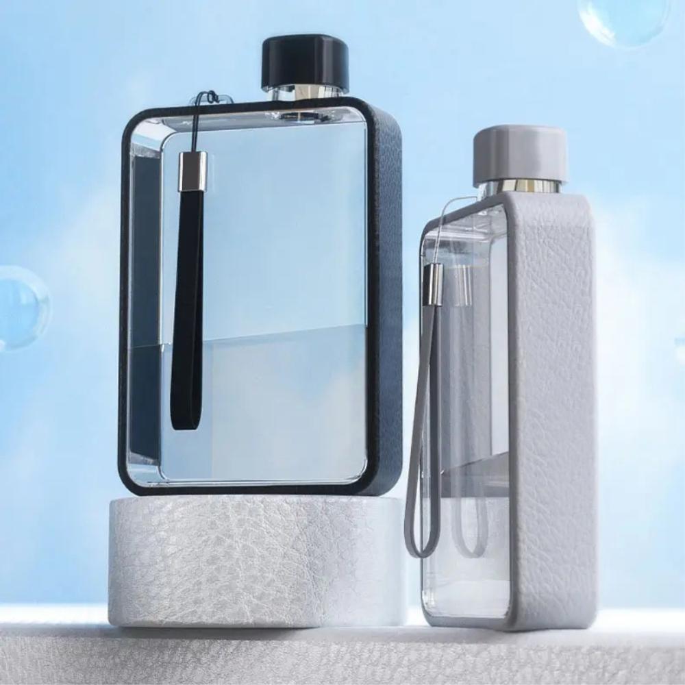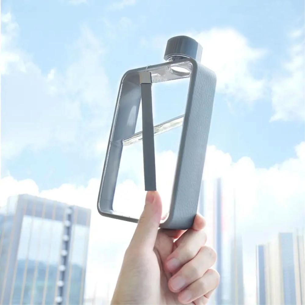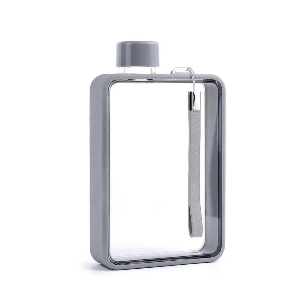 Пляшка виготовлена в мінімалістичному стилі, але її дизайн досить незвичний. Це справжній артоб’єкт з прозорими стінками й кольоровим контуром, що має м’яку текстуру. Для зручного транспортування пляшка обладнана ремінцем з екошкіри PU.