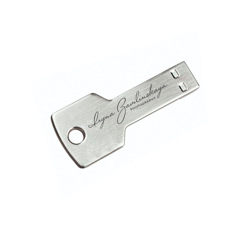 Флешка в форме ключа производится из прочного металла, который окрашен в различные цвета. Чип данных вмонтирован в литой корпус устройства. Благодаря этому флешка в виде ключа не нуждается в колпачке, а записанная информация защищена от утери при ударе. Уникальный внешний вид, а также возможность нанесения логотипа или надписи позволяют использовать флешку в качестве рекламного инструмента или запоминающегося подарка для партнёров и сотрудников. А специальное отверстие позволяет носить портативное устройство как брелок.