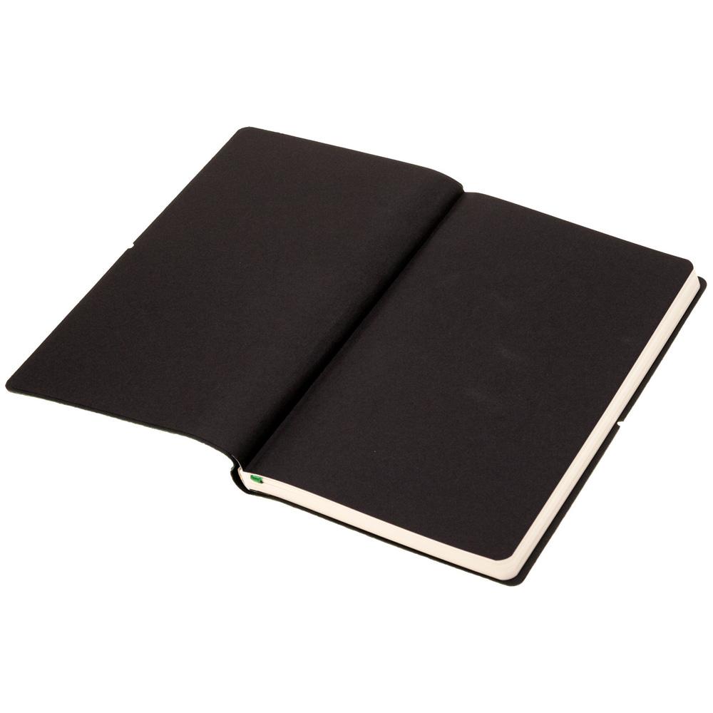 Большая область для внесения заметок, эскизов и проектов. Удобный и практичный подарок. Матовая обложка имеет резинку-фиксатор, перетягивающий блокнот посередине. Форзацы – черного цвета. На каждой странице есть место для внесения даты.