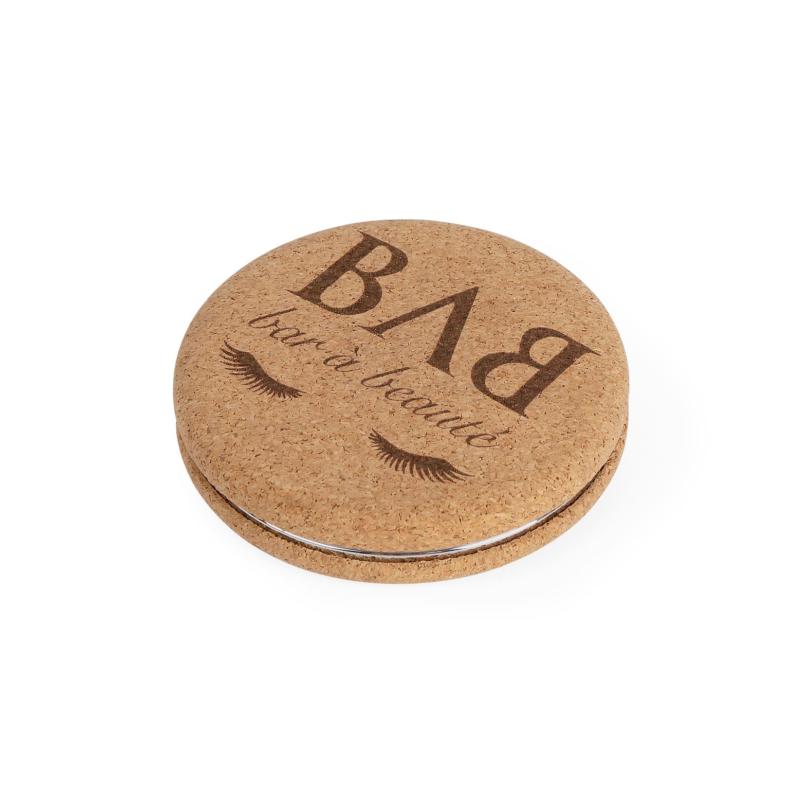Корпус из пробки выглядит современно и экологично. Благодаря компактному формату зеркальце легко помещается в сумке или косметичке. Площадь нанесения диаметром 62 мм идеально подходит для брендирования логотипом или рекламным сообщением, делая Jolly эффективным носителем бренда.