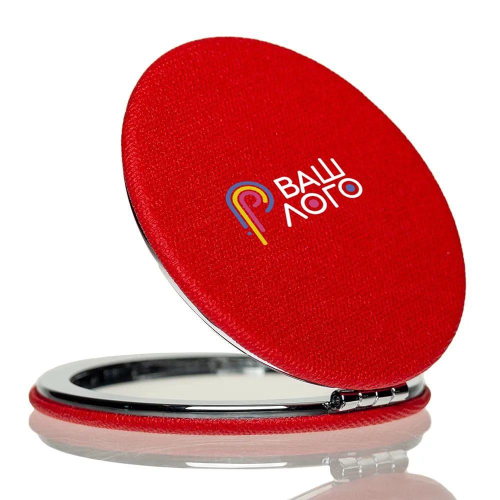 Зеркальце металл и кожзам 71 мм с логотипом компании