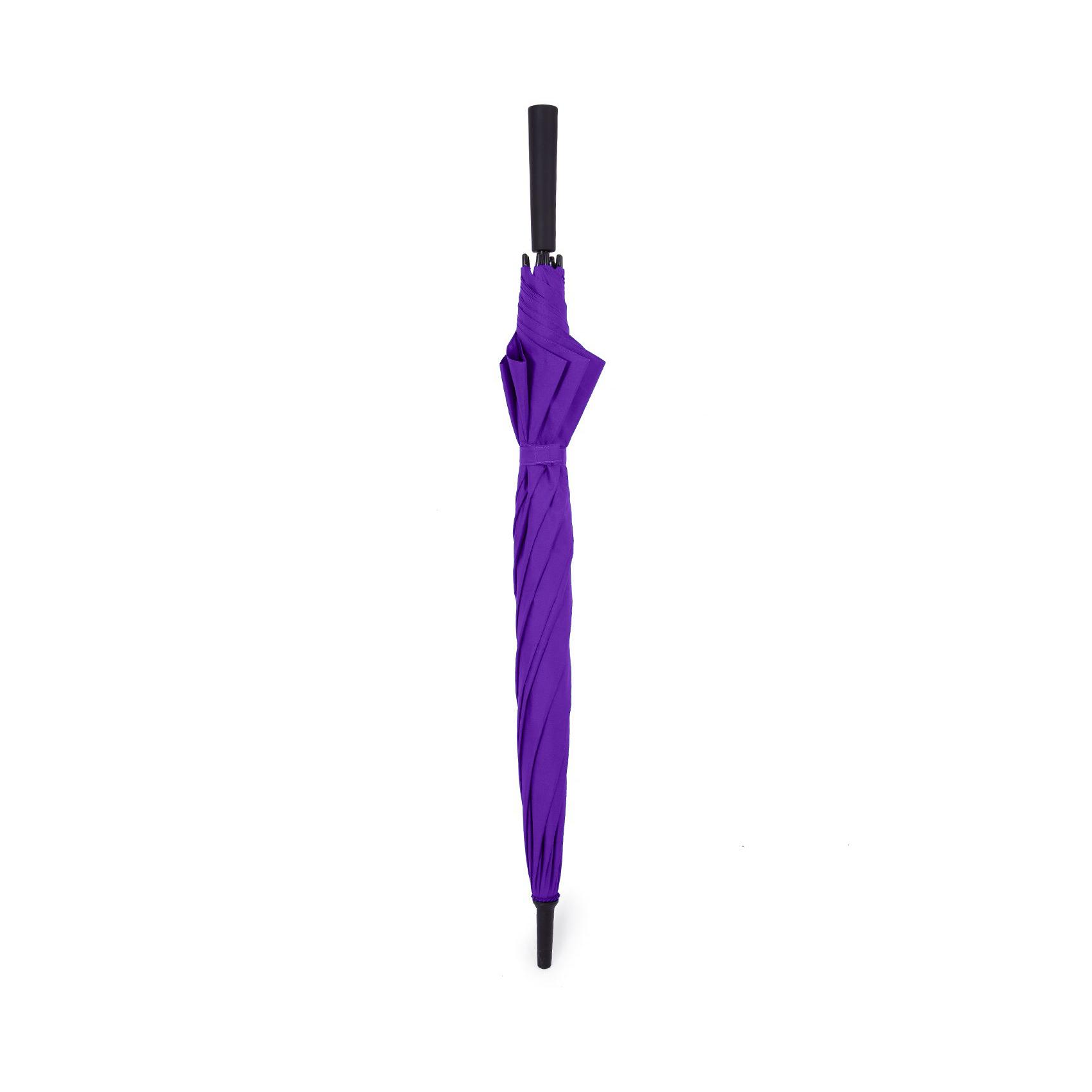 Зонт-трость полуавтомат с удобной пластиковой ручкой покрытой софт-тач, спицы и открывающийся механизм изготовлены из стекловолокна и пластика, металлический стержень.